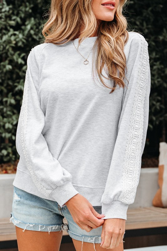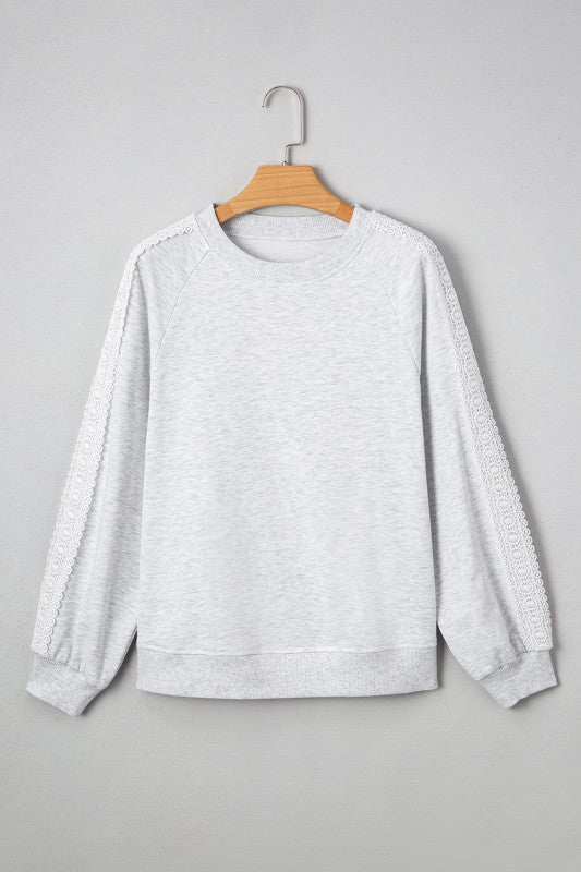 The Lace Patchwork Raglan Sleeve Top adds just the right amount of charm to your everyday wardrobe. Designed with delicate lace patchwork, this piece takes a classic casual silhouette and elevates it with soft, feminine detail. Raglan sleeves ensure a relaxed, cozy fit, while the crew neckline keeps it timeless and easy to style. Perfect for breezy spring and fall days, this top is a versatile favorite you’ll reach for again and again.