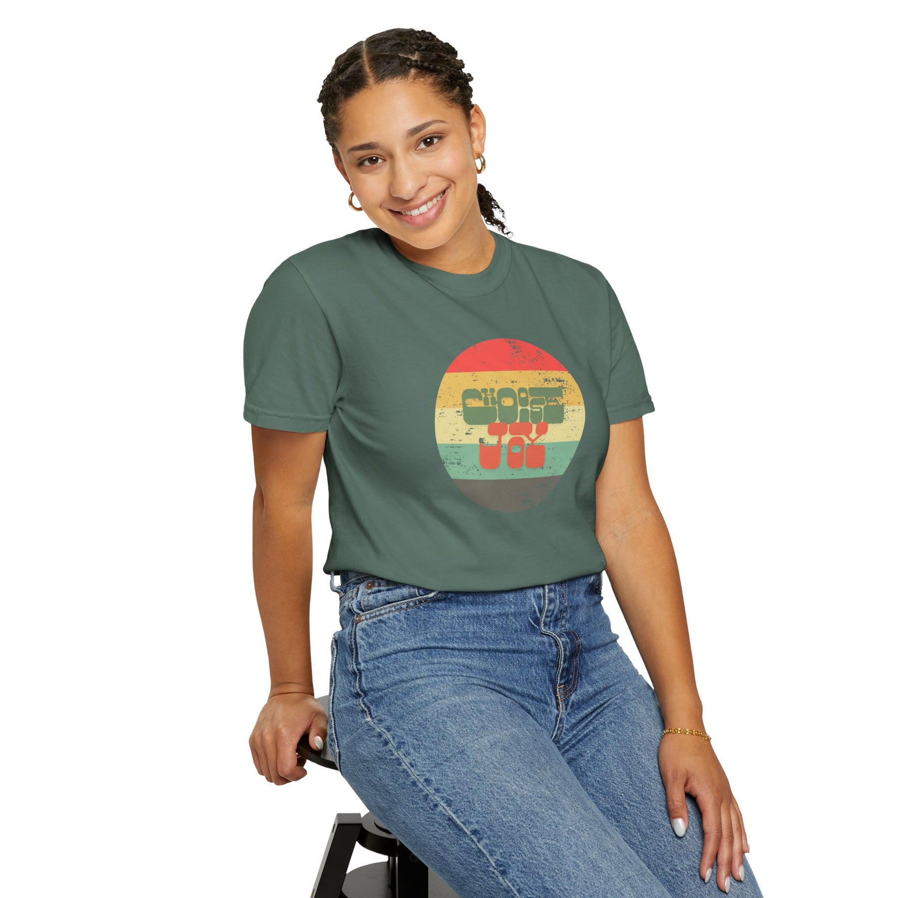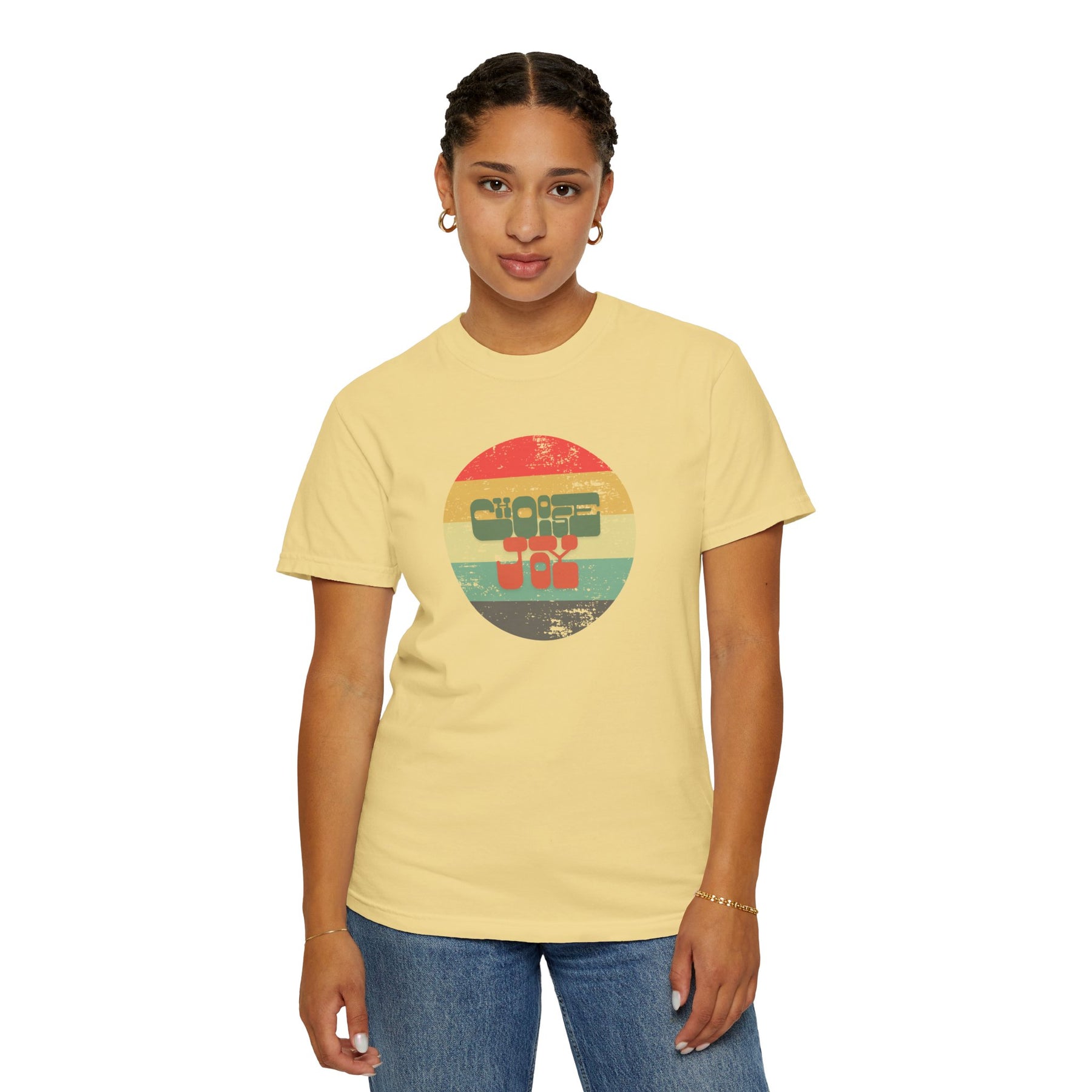 Bring a laid-back vibe and a dose of positivity to your wardrobe with this cheerful retro graphic tee.
