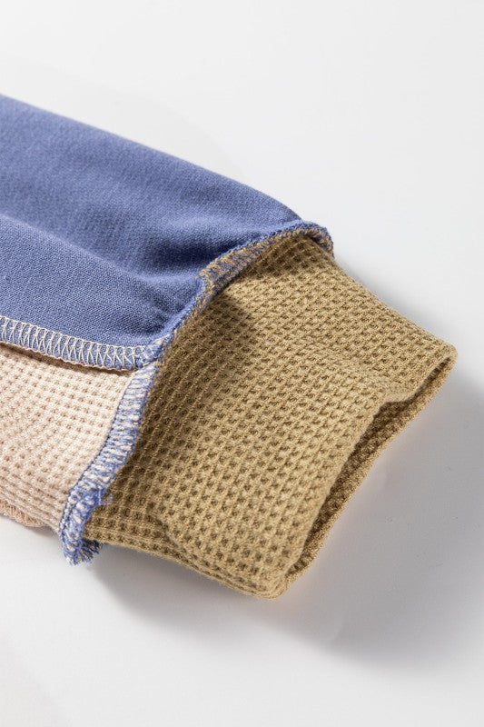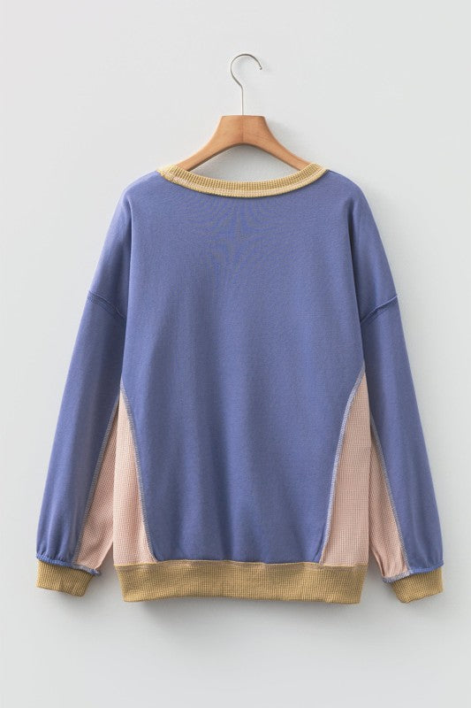 Alaina Waffle Patchwork Oversize Sweatshirt