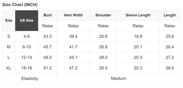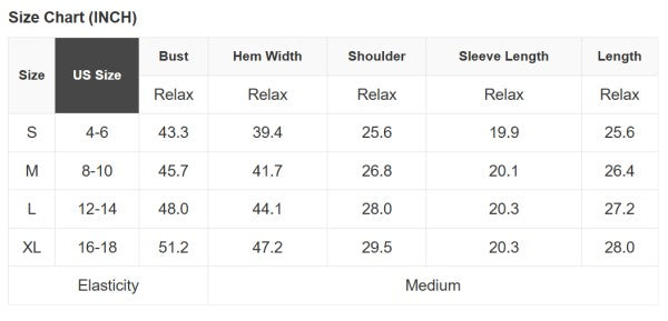 See size chart for approximate measurements