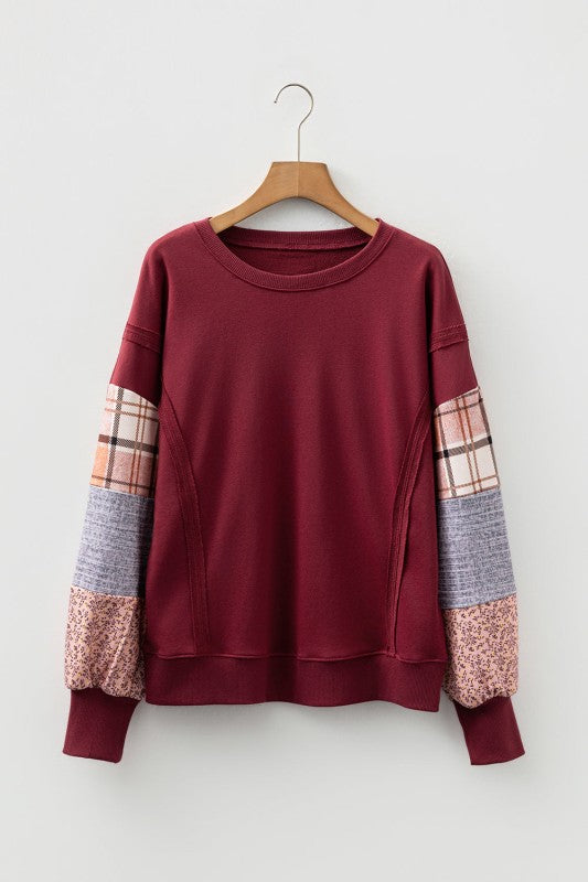 Show off your playful side with this sweatshirt featuring eye-catching plaid patchwork in vibrant colorblocks. The raw seams bring a cool, street-smart vibe to this cozy pullover. With a relaxed fit and slouchy drop shoulders, it’s the ideal oversized sweatshirt for fall chill-outs. Crafted from premium fabric, it promises warmth and comfort all season long. Polyester/Cotton